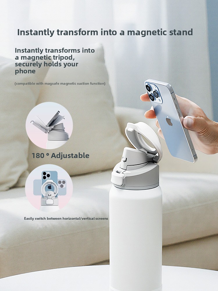 Magnetic Insulated Sports Water Bottle with Phone Holder